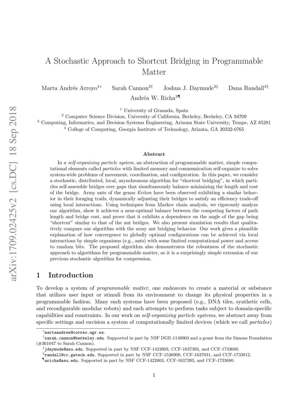 A Stochastic Approach to Shortcut Bridging in Programmable Matter