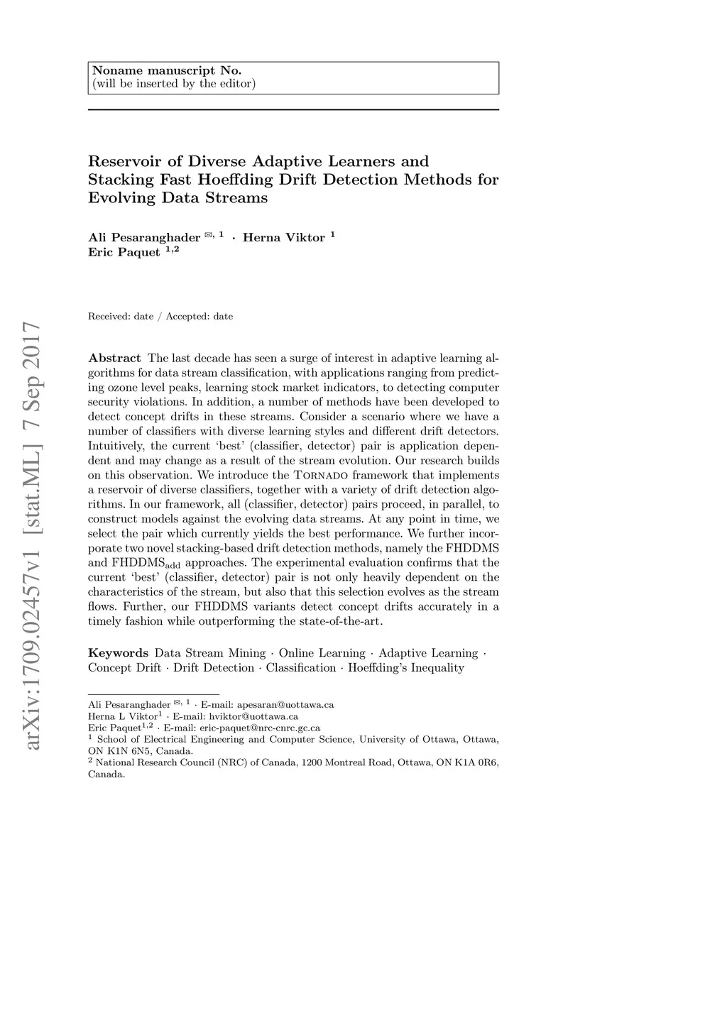 Reservoir of Diverse Adaptive Learners and Stacking Fast Hoeffding Drift