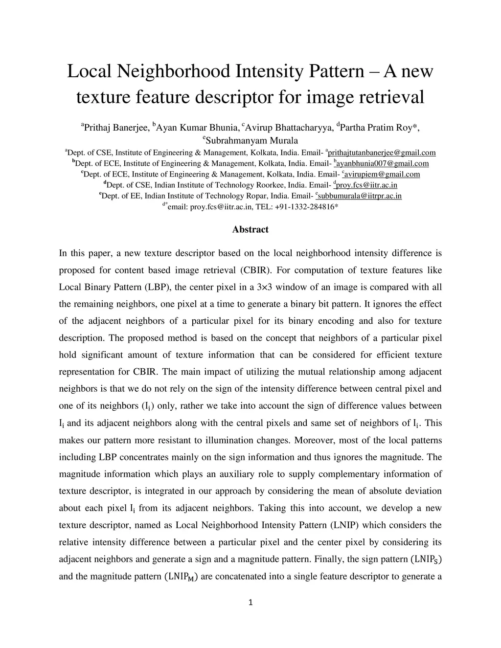 Local Neighborhood Intensity Pattern: A new texture feature descriptor