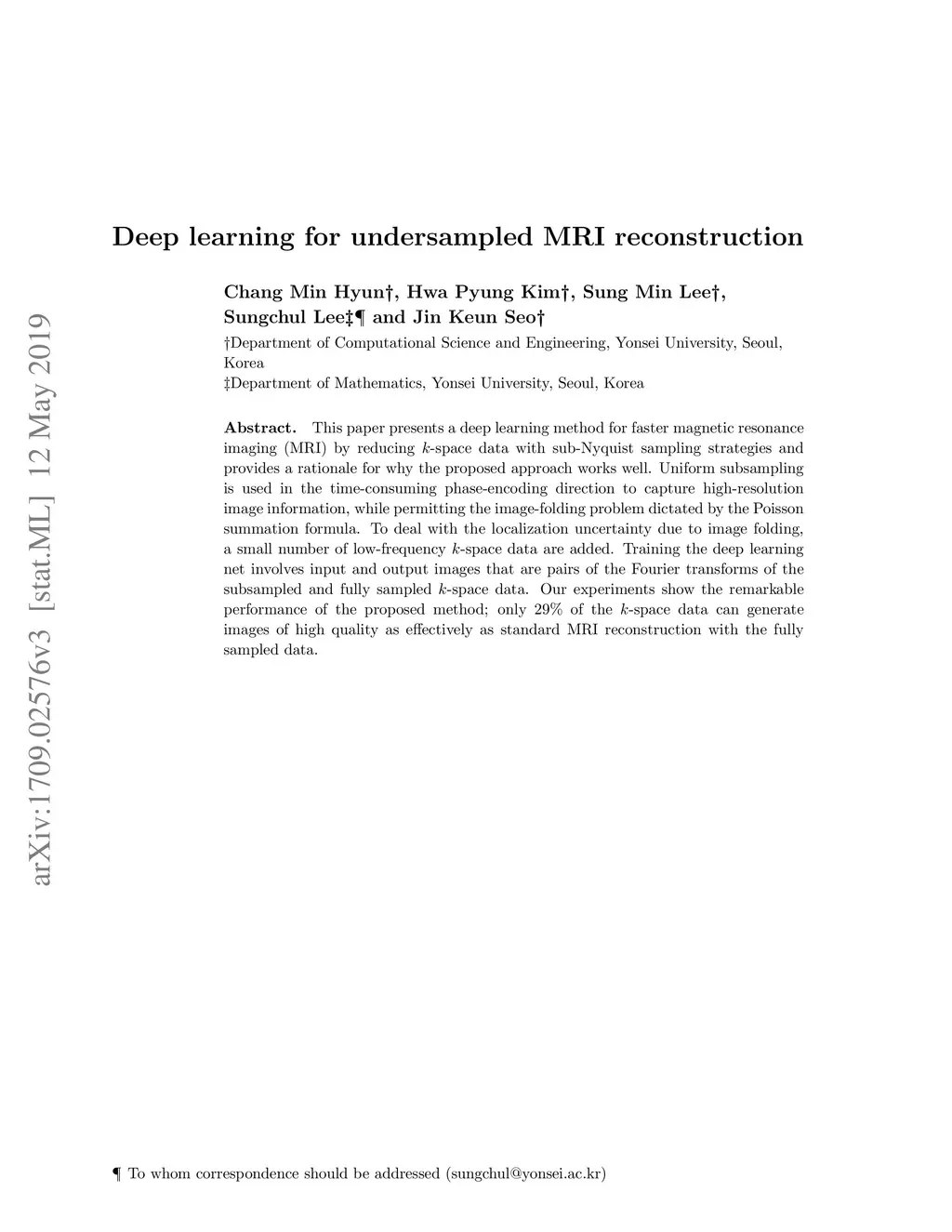 Deep learning for undersampled MRI reconstruction