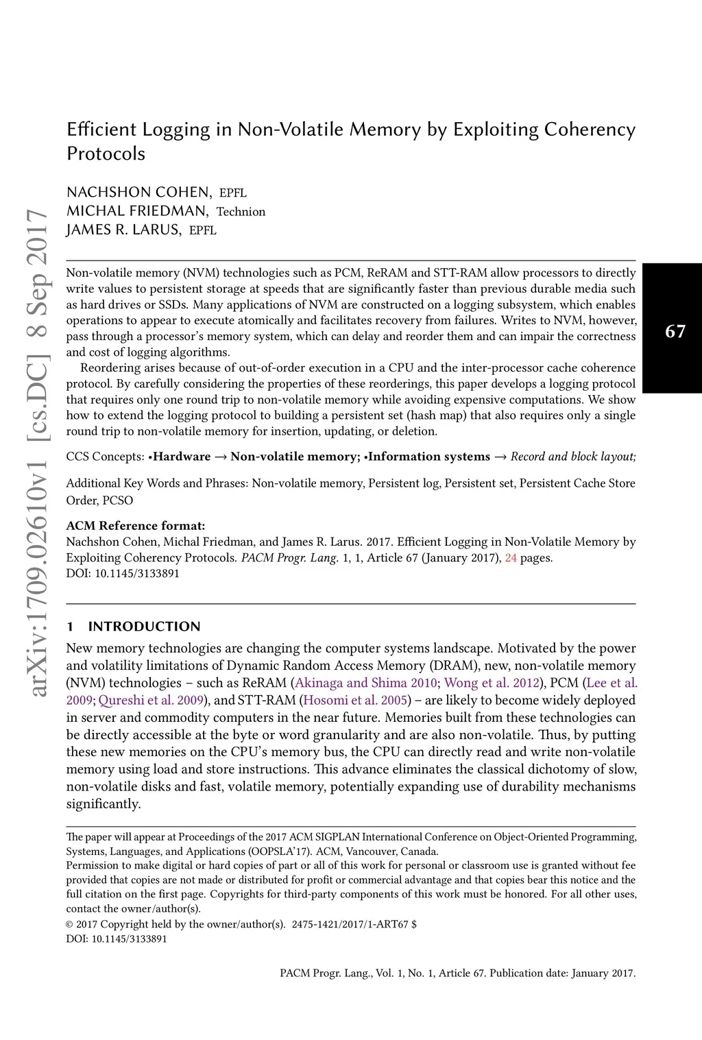 Efficient Logging in Non-Volatile Memory by Exploiting Coherency