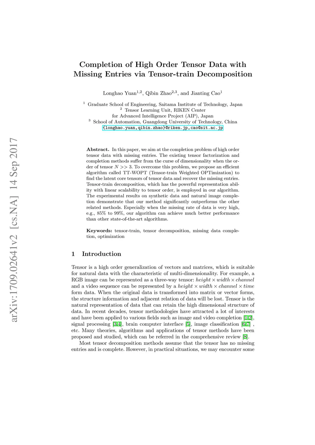 Completion of High Order Tensor Data with Missing Entries via