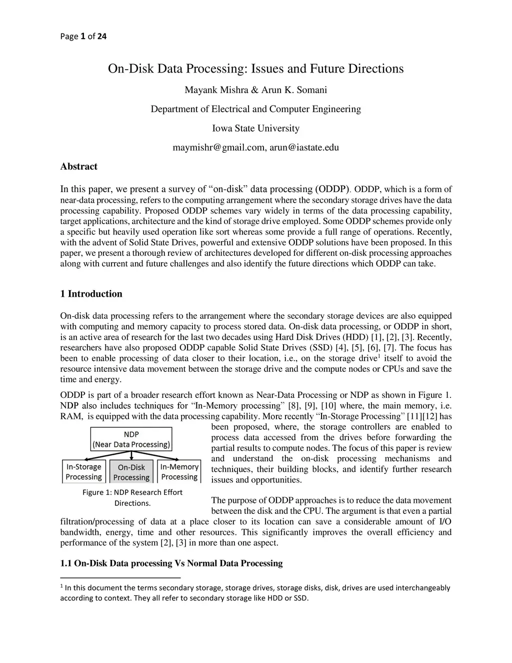 On-Disk Data Processing: Issues and Future Directions