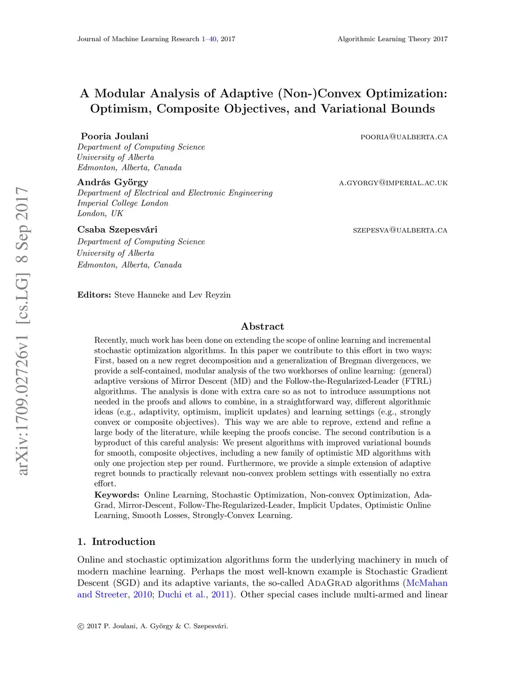 Recently, much work has been done on extending the scope of online learning and incremental stochastic optimization algorithms. In this paper we contribute to this effort in two ways: First, based on a new regret decomposition and a generalization of Bregman divergences, we provide a self-contained, modular analysis of the two workhorses of online learning: (general) adaptive versions of Mirror Descent (MD) and the Follow-the-Regularized-Leader (FTRL) algorithms. The analysis is done with extra care so as not to introduce assumptions not needed in the proofs and allows to combine, in a straightforward way, different algorithmic ideas (e.g., adaptivity, optimism, implicit updates) and learning settings (e.g., strongly convex or composite objectives). This way we are able to reprove, extend and refine a large body of the literature, while keeping the proofs concise. The second contribution is a byproduct of this careful analysis: We present algorithms with improved variational bounds for smooth, composite objectives, including a new family of optimistic MD algorithms with only one projection step per round. Furthermore, we provide a simple extension of adaptive regret bounds to practically relevant non-convex problem settings with essentially no extra effort.