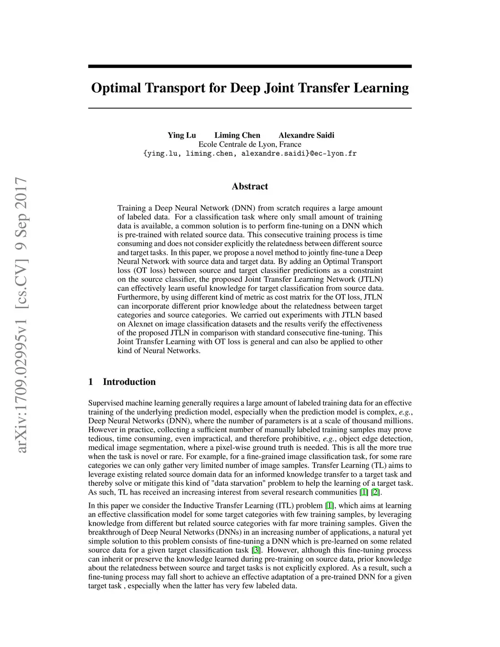 Optimal Transport for Deep Joint Transfer Learning