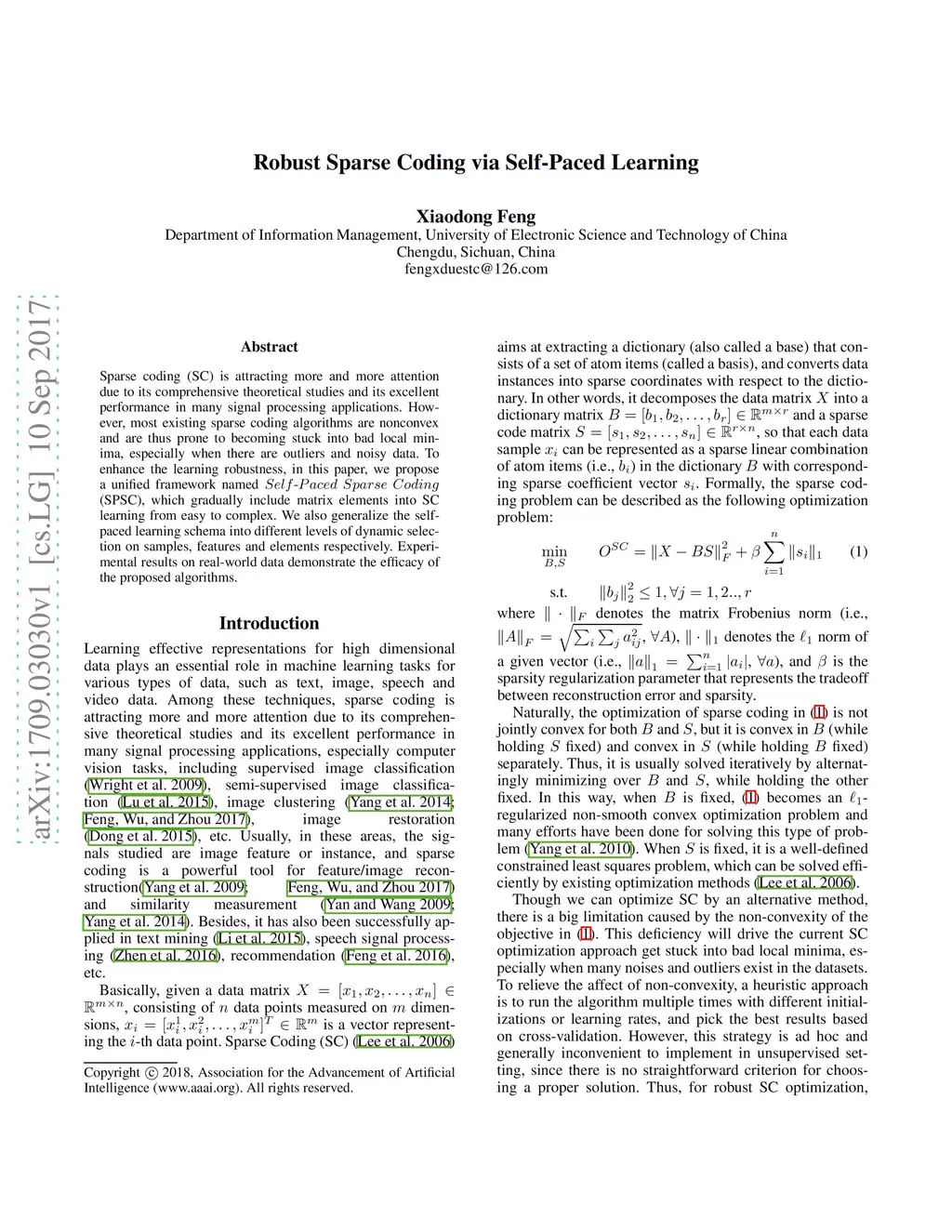 Robust Sparse Coding via Self-Paced Learning