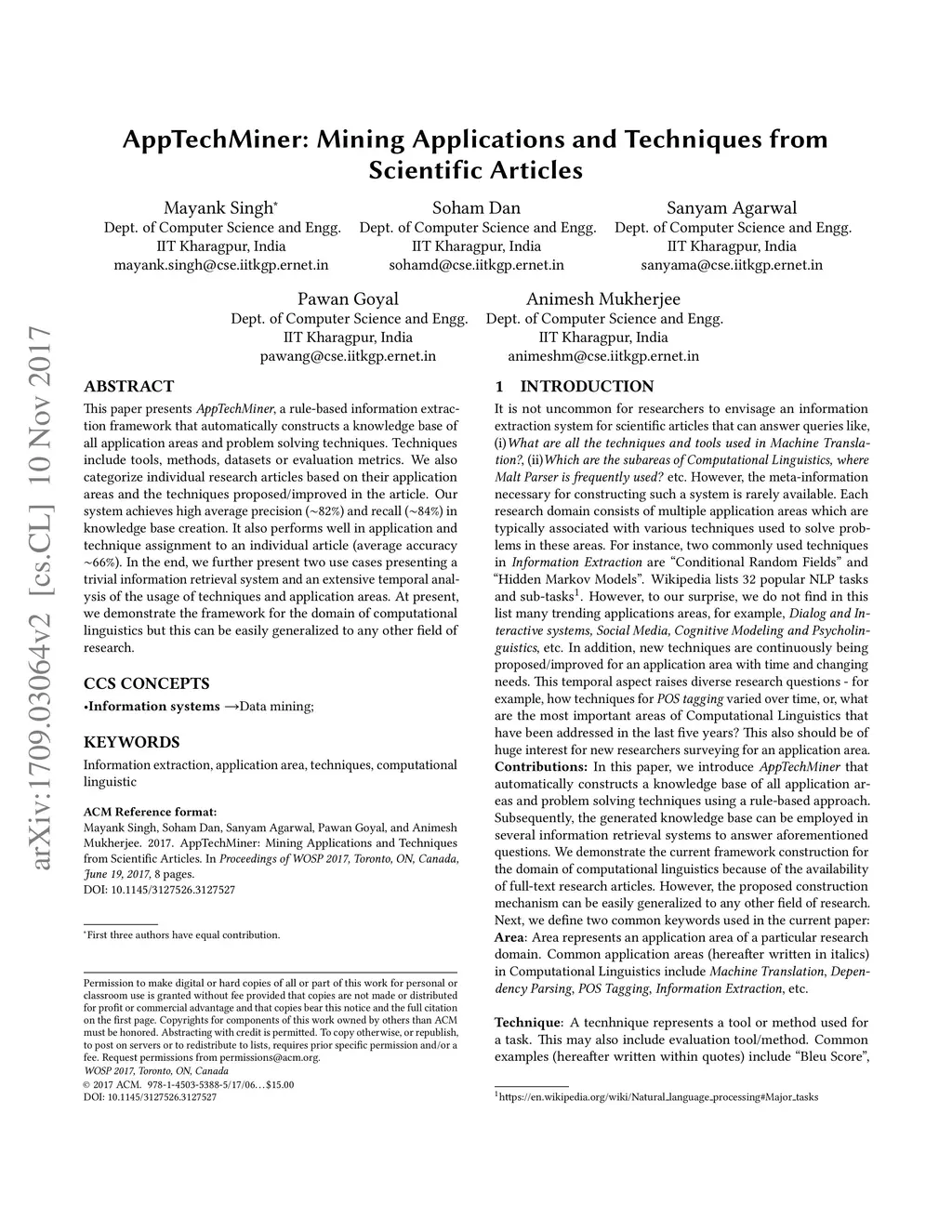 AppTechMiner: Mining Applications and Techniques from Scientific