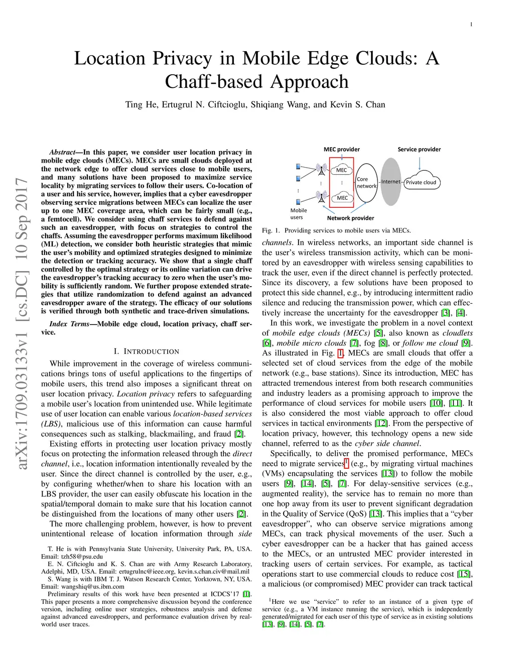 Location Privacy in Mobile Edge Clouds: A Chaff-based Approach