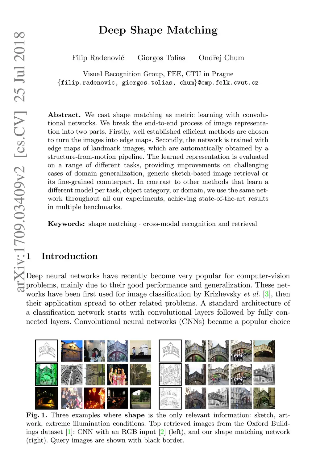 We cast shape matching as metric learning with convolutional networks. We break the end-to-end process of image representation into two parts. Firstly, well established efficient methods are chosen to turn the images into edge maps. Secondly, the network is trained with edge maps of landmark images, which are automatically obtained by a structure-from-motion pipeline. The learned representation is evaluated on a range of different tasks, providing improvements on challenging cases of domain generalization, generic sketch-based image retrieval or its fine-grained counterpart. In contrast to other methods that learn a different model per task, object category, or domain, we use the same network throughout all our experiments, achieving state-of-the-art results in multiple benchmarks.