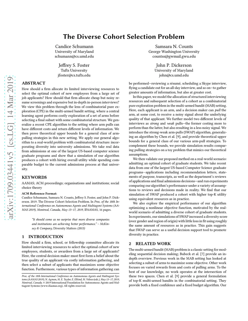 The Diverse Cohort Selection Problem