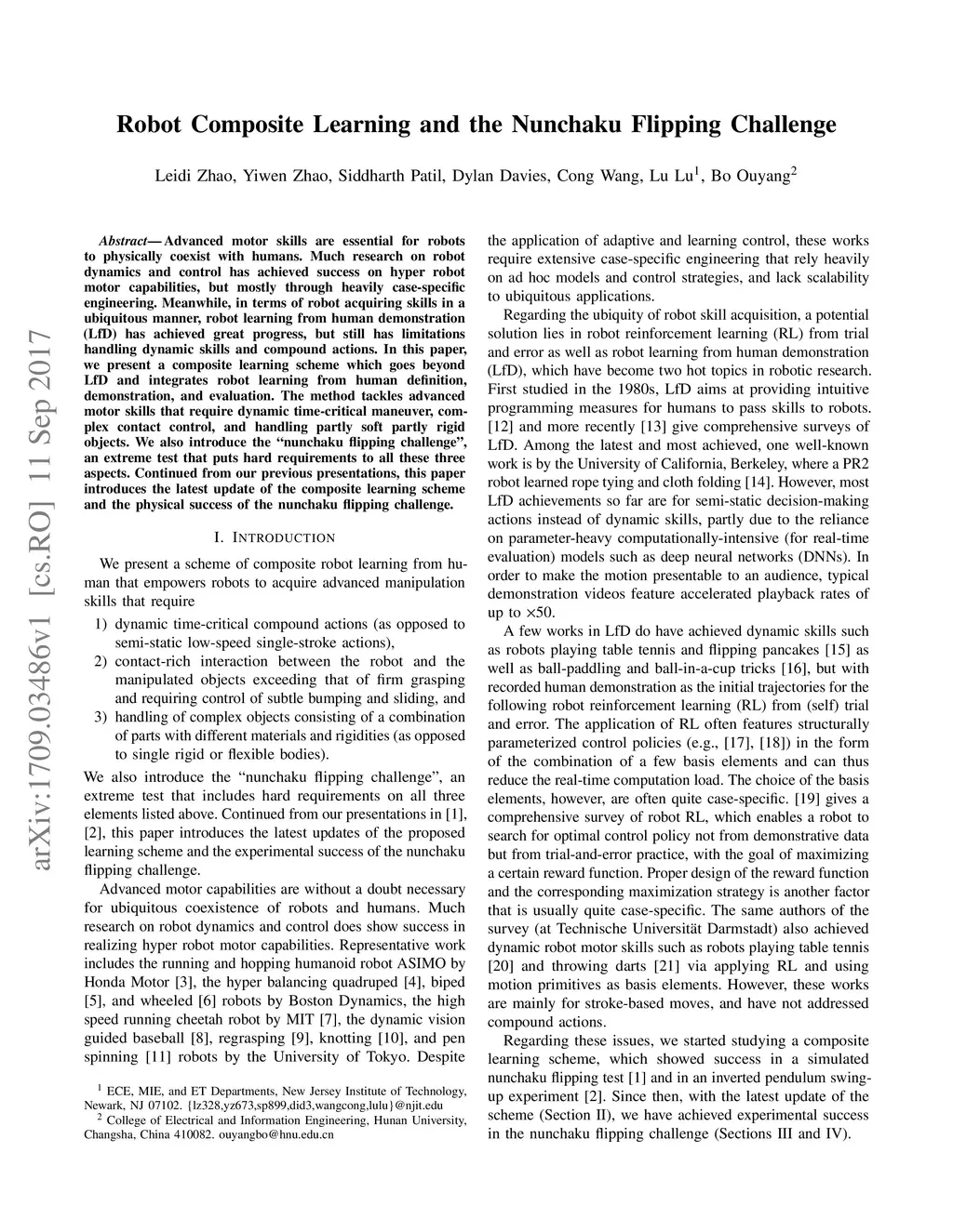 Robot Composite Learning and the Nunchaku Flipping Challenge