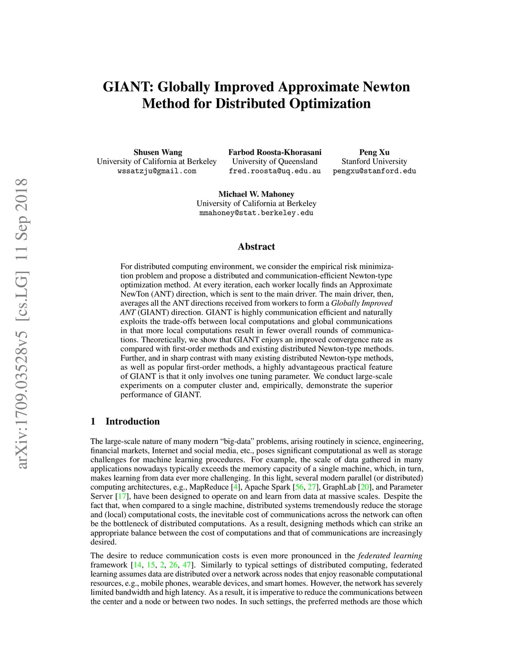 GIANT: Globally Improved Approximate Newton Method for Distributed