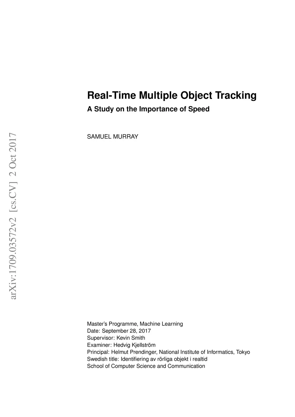 In this project, we implement a multiple object tracker, following the tracking-by-detection paradigm, as an extension of an existing method. It works by modelling the movement of objects by solving the filtering problem, and associating detections with predicted new locations in new frames using the Hungarian algorithm. Three different similarity measures are used, which use the location and shape of the bounding boxes. Compared to other trackers on the MOTChallenge leaderboard, our method, referred to as C++SORT, is the fastest non-anonymous submission, while also achieving decent score on other metrics. By running our model on the Okutama-Action dataset, sampled at different frame-rates, we show that the performance is greatly reduced when running the model - including detecting objects - in real-time. In most metrics, the score is reduced by 50%, but in certain cases as much as 90%. We argue that this indicates that other, slower methods could not be used for tracking in real-time, but that more research is required specifically on this.