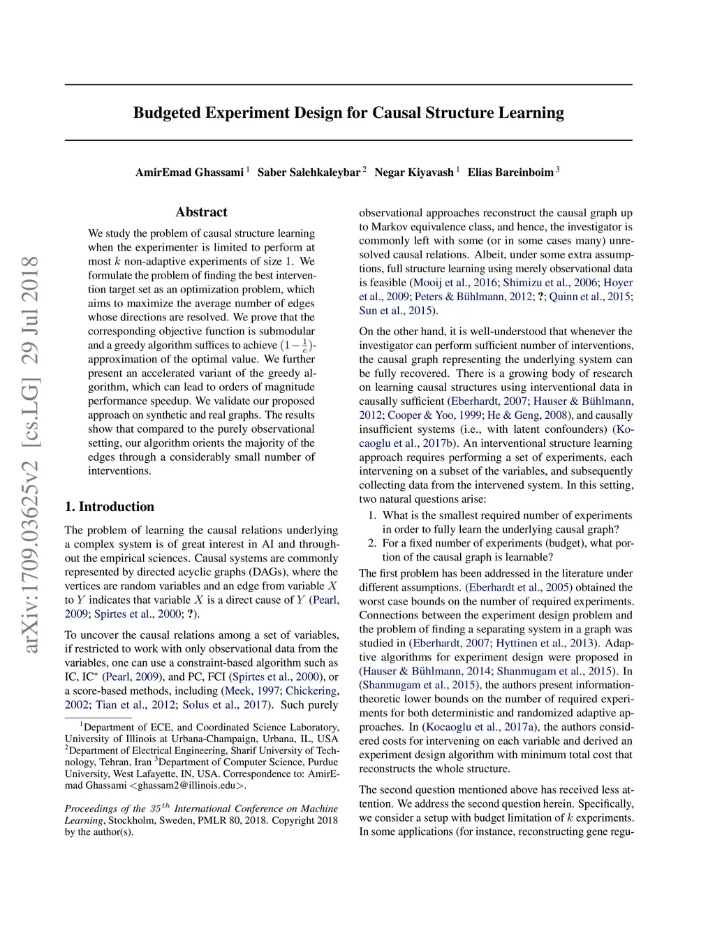 We study the problem of causal structure learning when the experimenter is limited to perform at most non-adaptive experiments of size . We formulate the problem of finding the best intervention target set as an optimization problem, which aims to maximize the average number of edges whose directions are resolved. We prove that the corresponding objective function is submodular and a greedy algorithm suffices to achieve -approximation of the optimal value. We further present an accelerated variant of the greedy algorithm, which can lead to orders of magnitude performance speedup. We validate our proposed approach on synthetic and real graphs. The results show that compared to the purely observational setting, our algorithm orients the majority of the edges through a considerably small number of interventions.