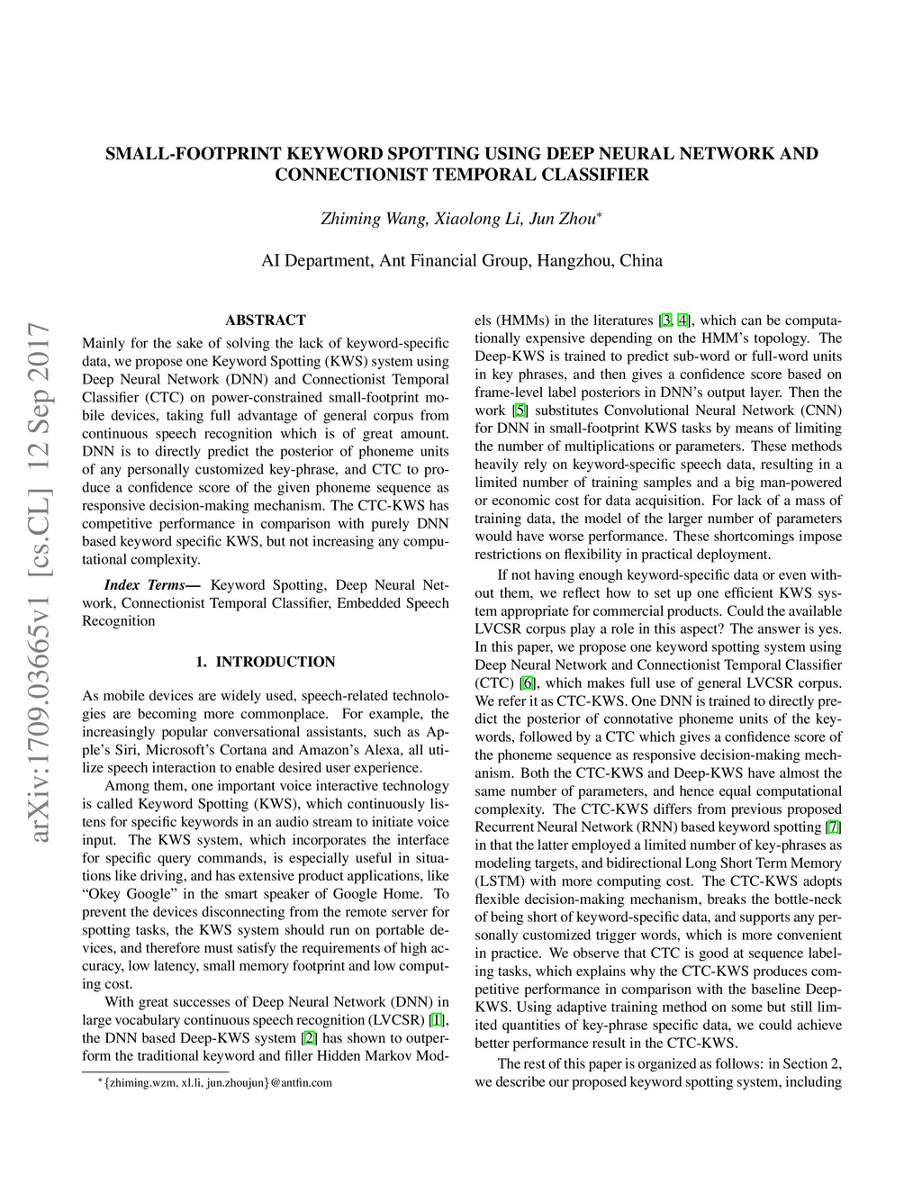 Mainly for the sake of solving the lack of keyword-specific data, we propose one Keyword Spotting (KWS) system using Deep Neural Network (DNN) and Connectionist Temporal Classifier (CTC) on power-constrained small-footprint mobile devices, taking full advantage of general corpus from continuous speech recognition which is of great amount. DNN is to directly predict the posterior of phoneme units of any personally customized key-phrase, and CTC to produce a confidence score of the given phoneme sequence as responsive decision-making mechanism. The CTC-KWS has competitive performance in comparison with purely DNN based keyword specific KWS, but not increasing any computational complexity.