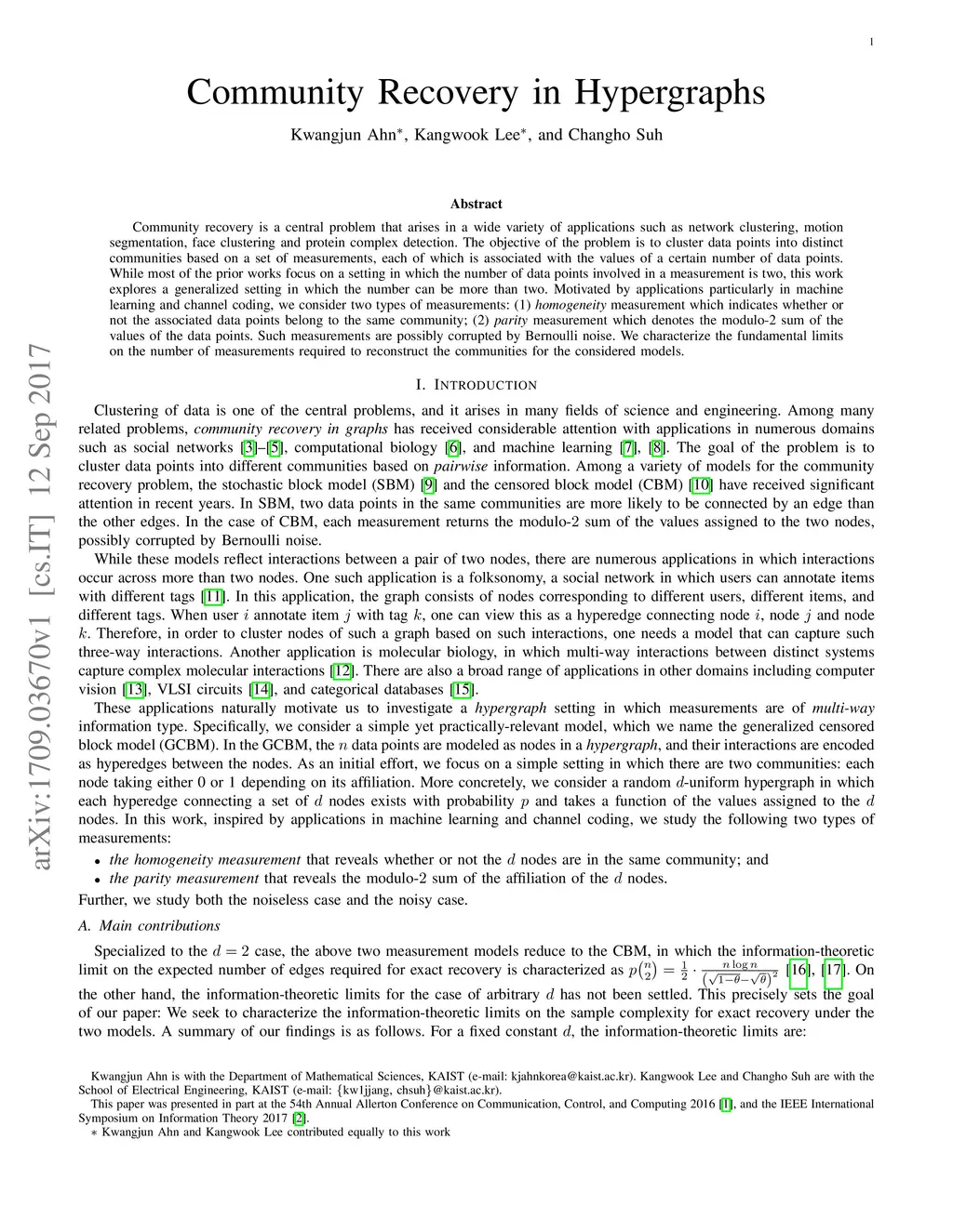 Community recovery is a central problem that arises in a wide variety of applications such as network clustering, motion segmentation, face clustering and protein complex detection. The objective of the problem is to cluster data points into distinct communities based on a set of measurements, each of which is associated with the values of a certain number of data points. While most of the prior works focus on a setting in which the number of data points involved in a measurement is two, this work explores a generalized setting in which the number can be more than two. Motivated by applications particularly in machine learning and channel coding, we consider two types of measurements: (1) homogeneity measurement which indicates whether or not the associated data points belong to the same community; (2) parity measurement which denotes the modulo-2 sum of the values of the data points. Such measurements are possibly corrupted by Bernoulli noise. We characterize the fundamental limits on the number of measurements required to reconstruct the communities for the considered models.