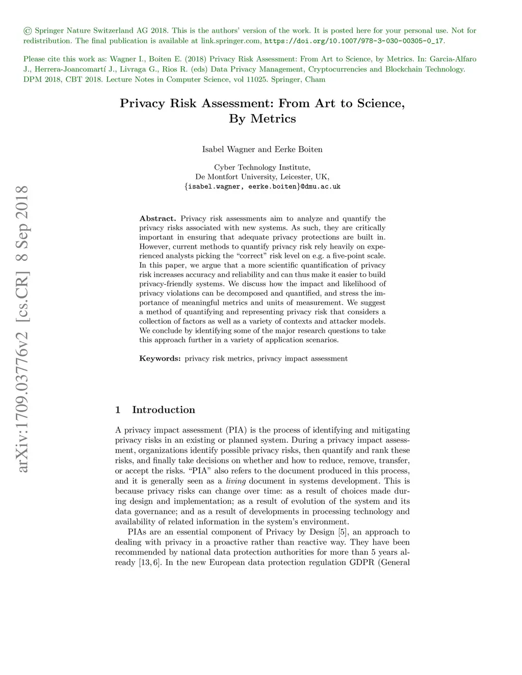 Privacy Risk Assessment: From Art to Science, By Metrics