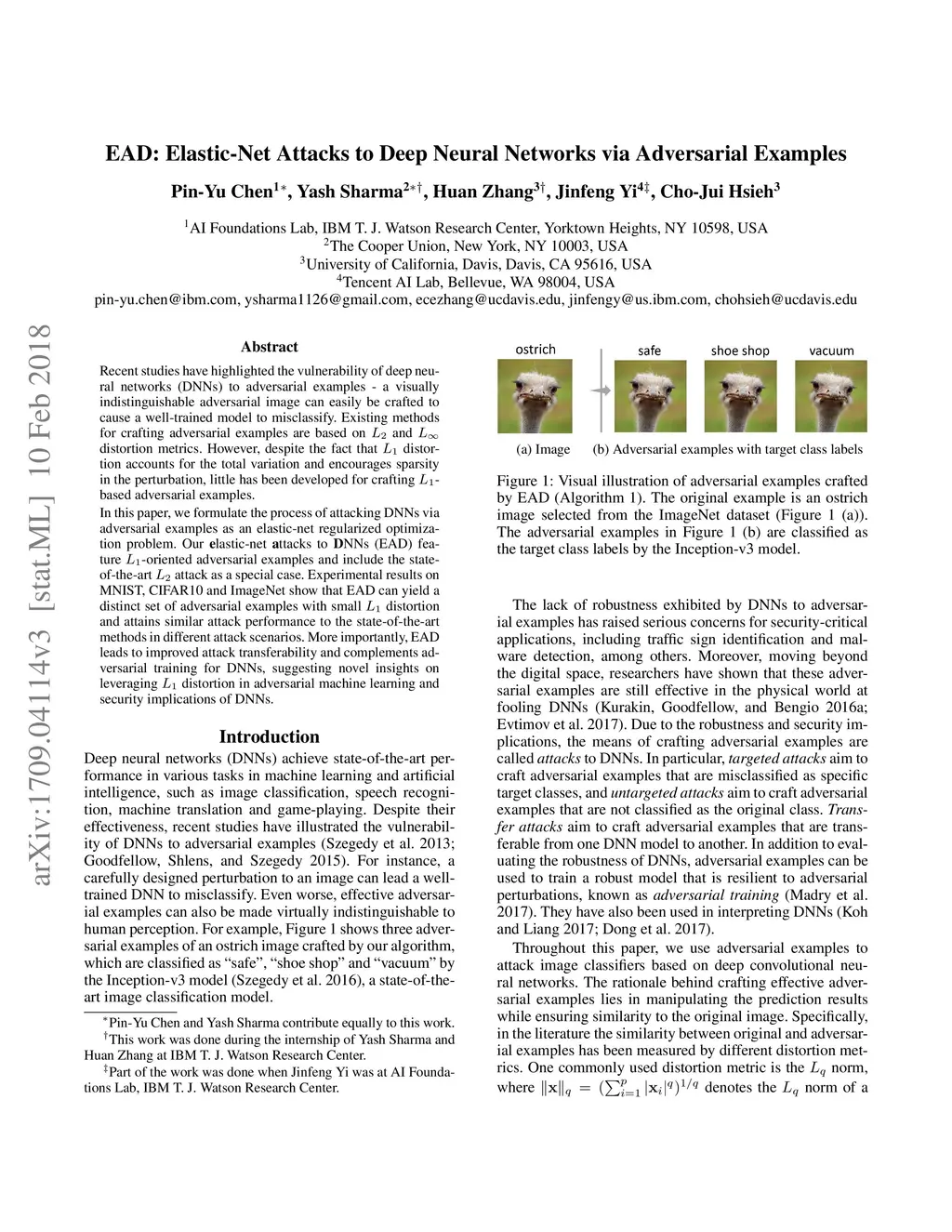EAD: Elastic-Net Attacks to Deep Neural Networks via Adversarial