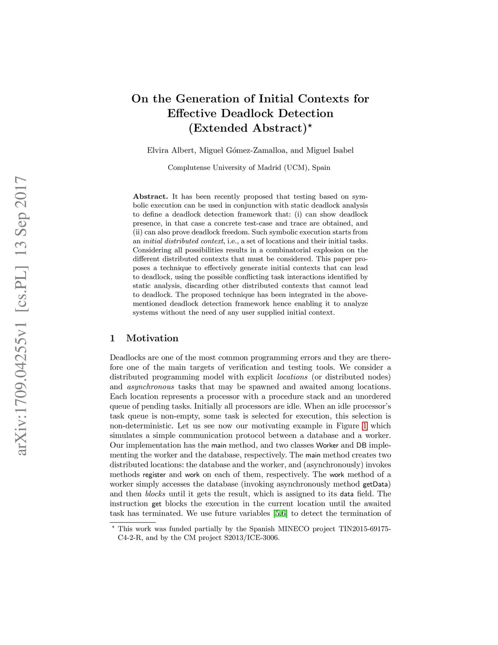 It has been recently proposed that testing based on symbolic execution can be used in conjunction with static deadlock analysis to define a deadlock detection framework that: (i) can show deadlock presence, in that case a concrete test-case and trace are obtained, and (ii) can also prove deadlock freedom. Such symbolic execution starts from an initial distributed context, i.e., a set of locations and their initial tasks. Considering all possibilities results in a combinatorial explosion on the different distributed contexts that must be considered. This paper proposes a technique to effectively generate initial contexts that can lead to deadlock, using the possible conflicting task interactions identified by static analysis, discarding other distributed contexts that cannot lead to deadlock. The proposed technique has been integrated in the above-mentioned deadlock detection framework hence enabling it to analyze systems without the need of any user supplied initial context.