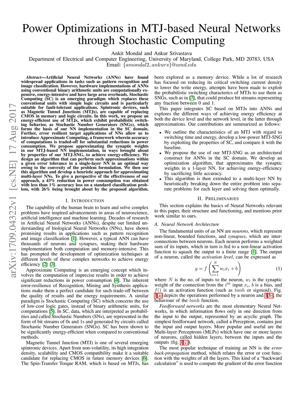 Power Optimizations in MTJ-based Neural Networks through Stochastic