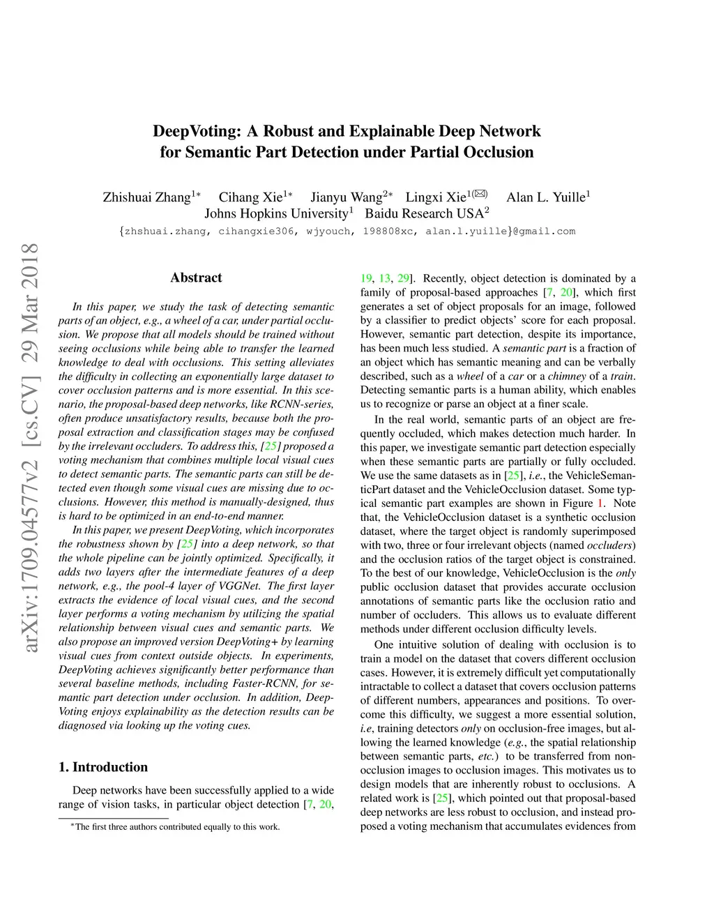 DeepVoting: An Explainable Framework for Semantic Part Detection under