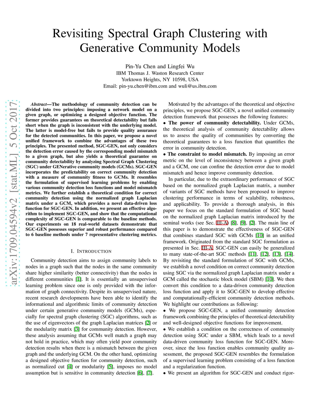 Revisiting Spectral Graph Clustering with Generative Community Models