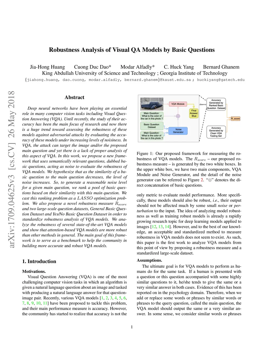 Visual Question Answering (VQA) models should have both high robustness and accuracy. Unfortunately, most of the current VQA research only focuses on accuracy because there is a lack of proper methods to measure the robustness of VQA models. There are two main modules in our algorithm. Given a natural language question about an image, the first module takes the question as input and then outputs the ranked basic questions, with similarity scores, of the main given question. The second module takes the main question, image and these basic questions as input and then outputs the text-based answer of the main question about the given image. We claim that a robust VQA model is one, whose performance is not changed much when related basic questions as also made available to it as input. We formulate the basic questions generation problem as a LASSO optimization, and also propose a large scale Basic Question Dataset (BQD) and Rscore (novel robustness measure), for analyzing the robustness of VQA models. We hope our BQD will be used as a benchmark for to evaluate the robustness of VQA models, so as to help the community build more robust and accurate VQA models.