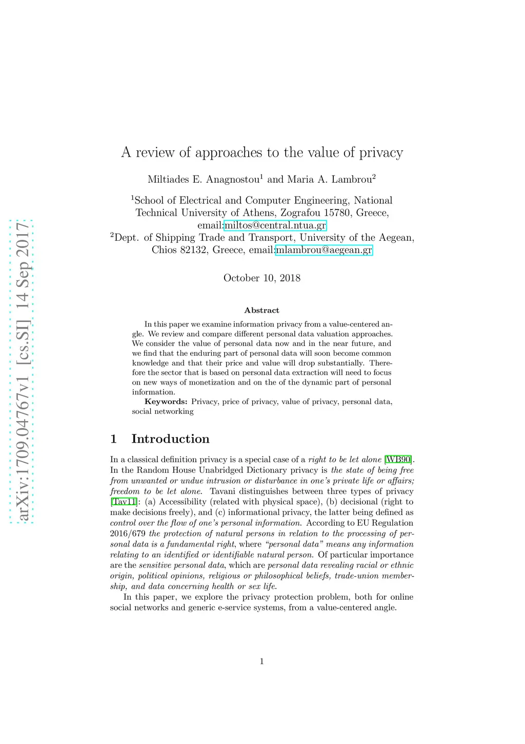 In this paper we examine information privacy from a value-centered angle. We review and compare different personal data valuation approaches. We consider the value of personal data now and in the near future, and we find that the enduring part of personal data will soon become common knowledge and that their price and value will drop substantially. Therefore the sector that is based on personal data extraction will need to focus on new ways of monetization and on the of the dynamic part of personal information.