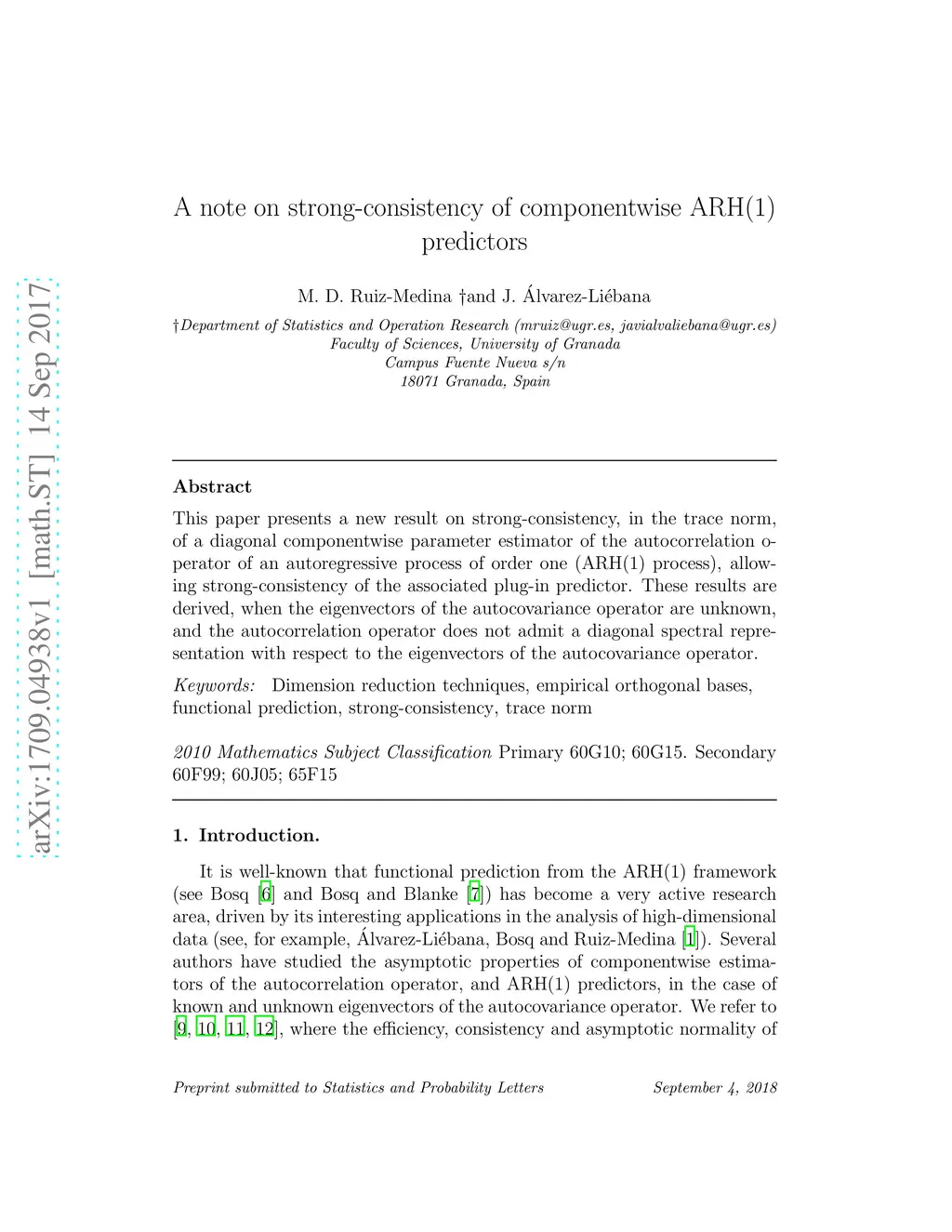 A note on strong-consistency of componentwise ARH(1) predictors