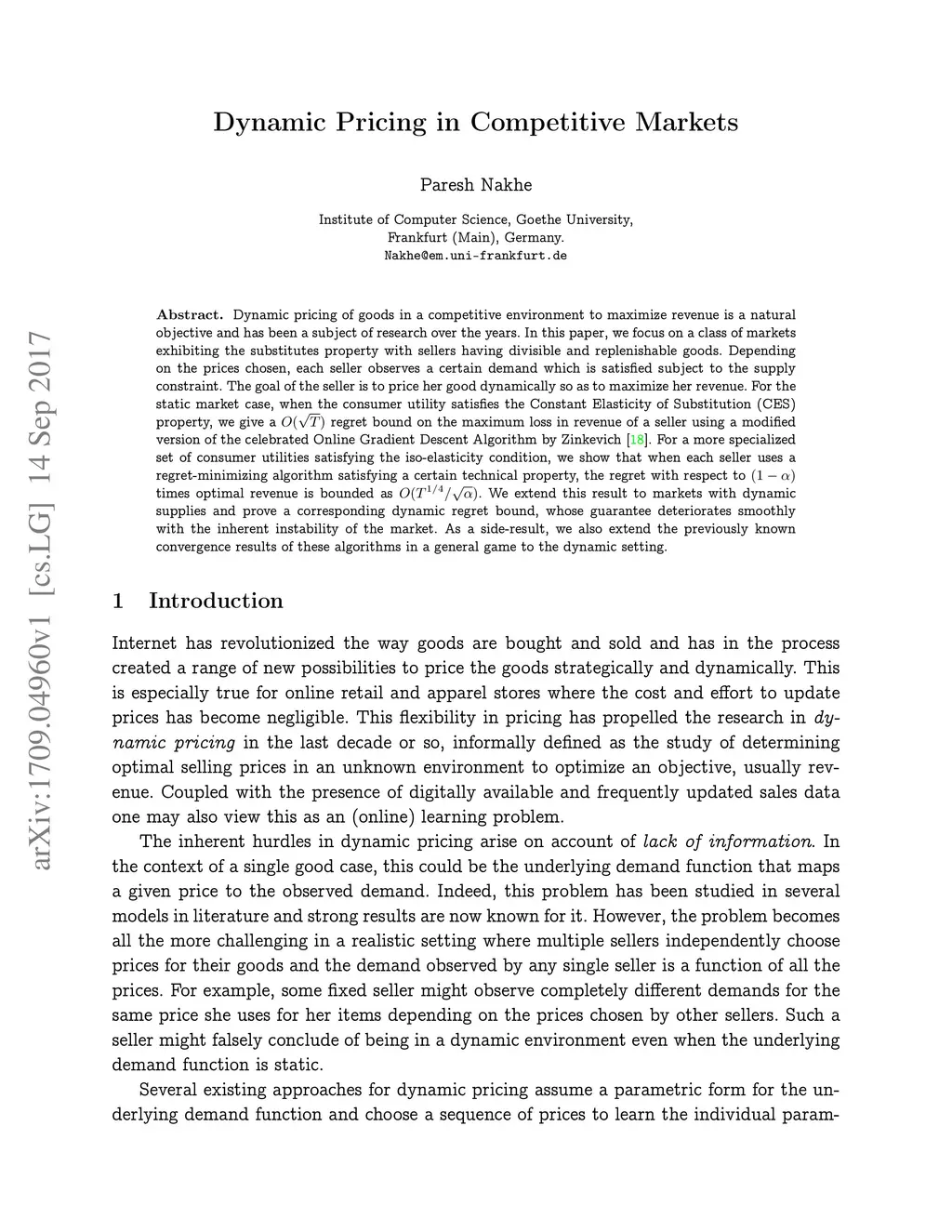Dynamic Pricing in Competitive Markets