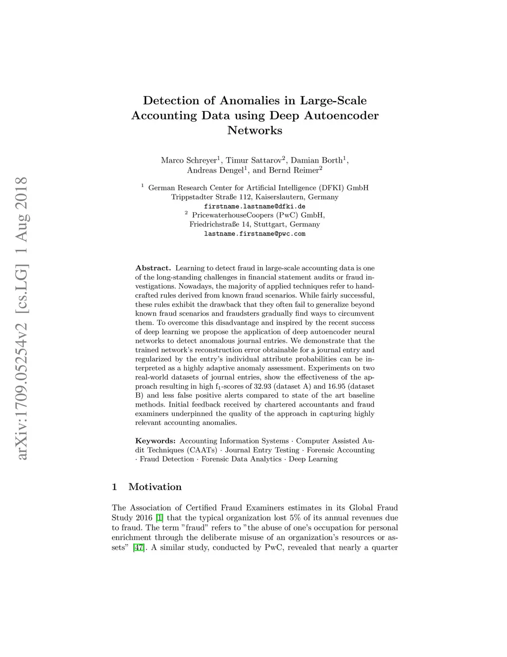 Detection of Anomalies in Large Scale Accounting Data using Deep
