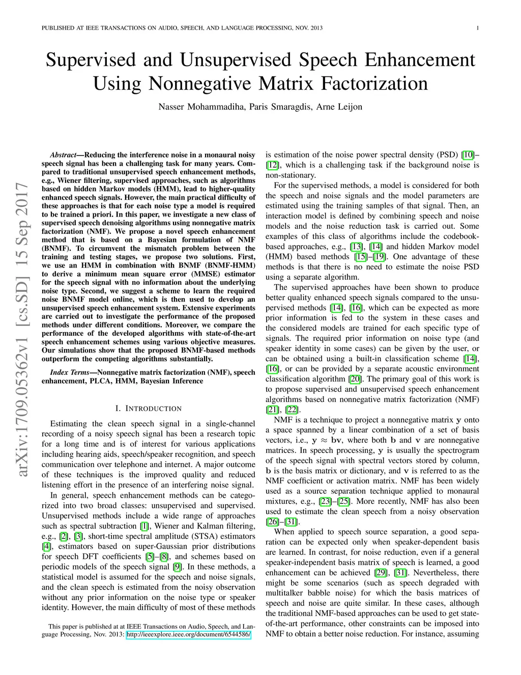 Supervised and Unsupervised Speech Enhancement Using Nonnegative Matrix