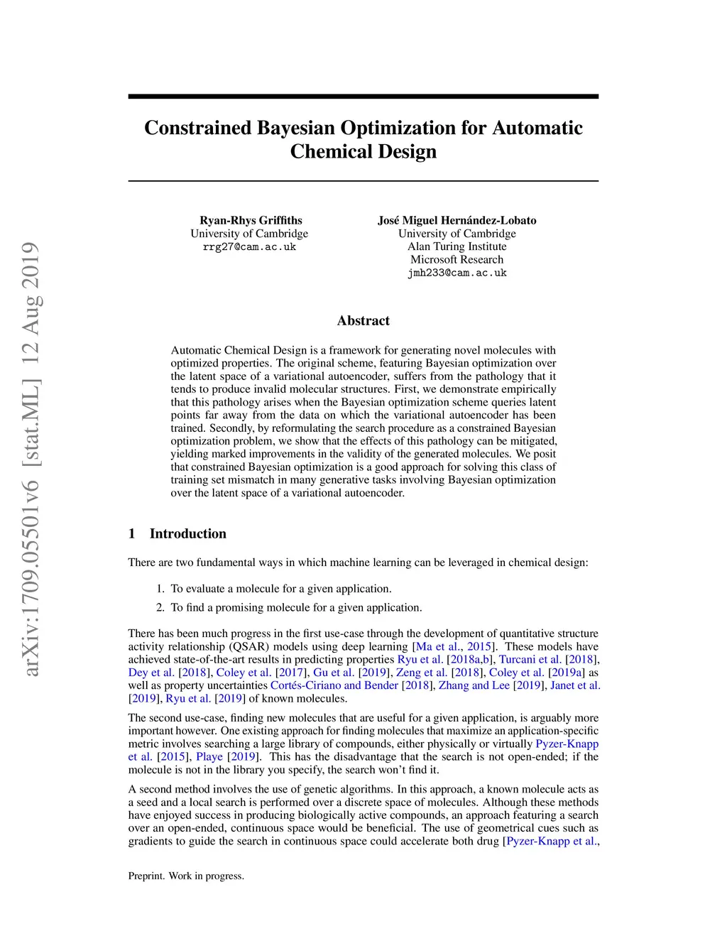 Constrained Bayesian Optimization for Automatic Chemical Design