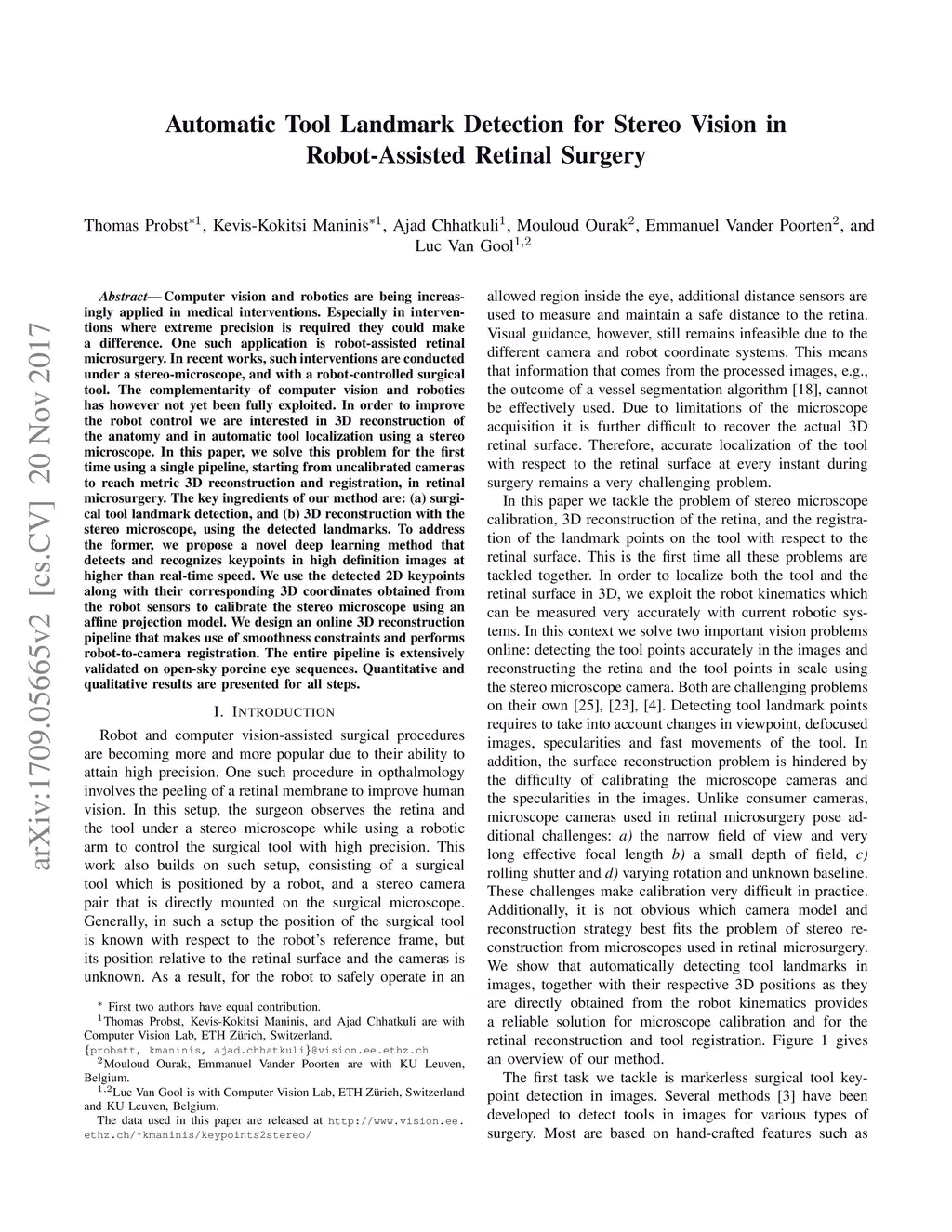 Automatic Tool Landmark Detection for Stereo Vision in Robot-Assisted