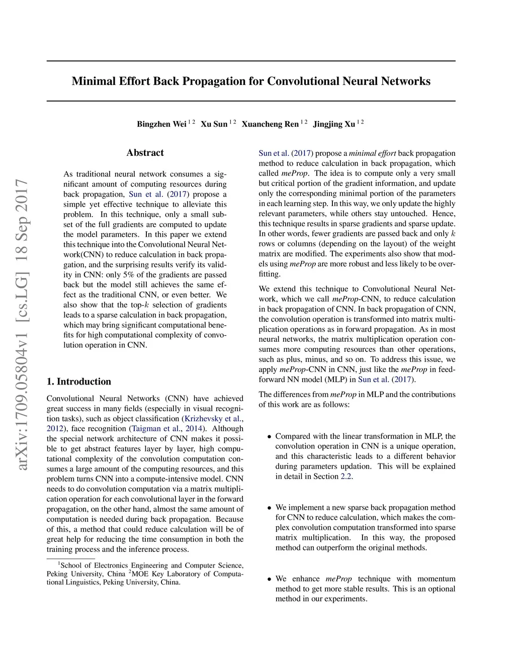 Minimal Effort Back Propagation for Convolutional Neural Networks