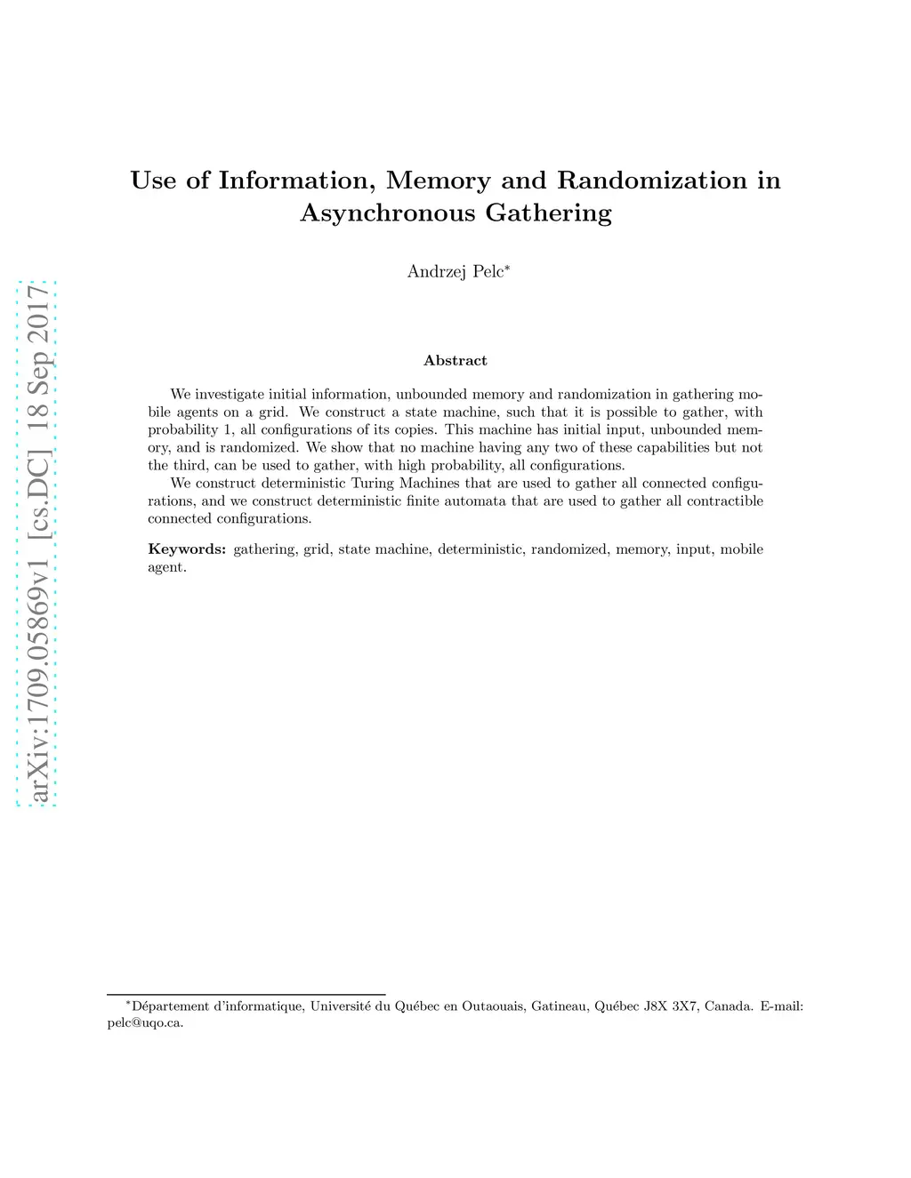 We investigate initial information, unbounded memory and randomization in gathering mobile agents on a grid. We construct a state machine, such that it is possible to gather, with probability 1, all configurations of its copies. This machine has initial input, unbounded memory, and is randomized. We show that no machine having any two of these capabilities but not the third, can be used to gather, with high probability, all configurations. We construct deterministic Turing Machines that are used to gather all connected configurations, and we construct deterministic finite automata that are used to gather all contractible connected configurations.