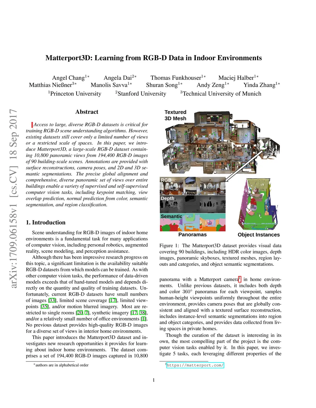 Matterport3D: Learning from RGB-D Data in Indoor Environments
