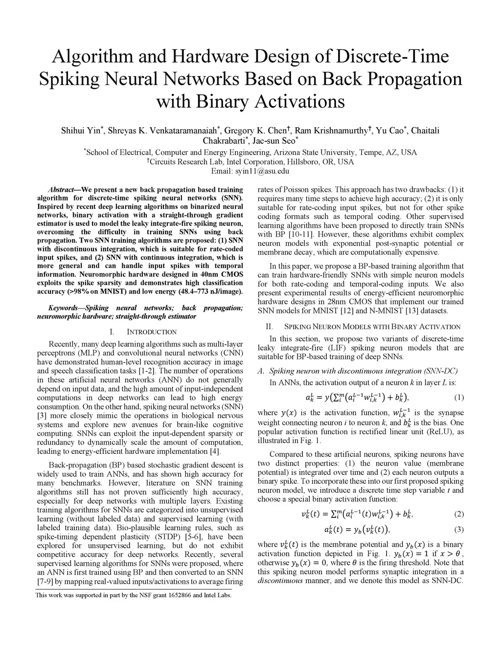 Algorithm and Hardware Design of Discrete-Time Spiking Neural Networks