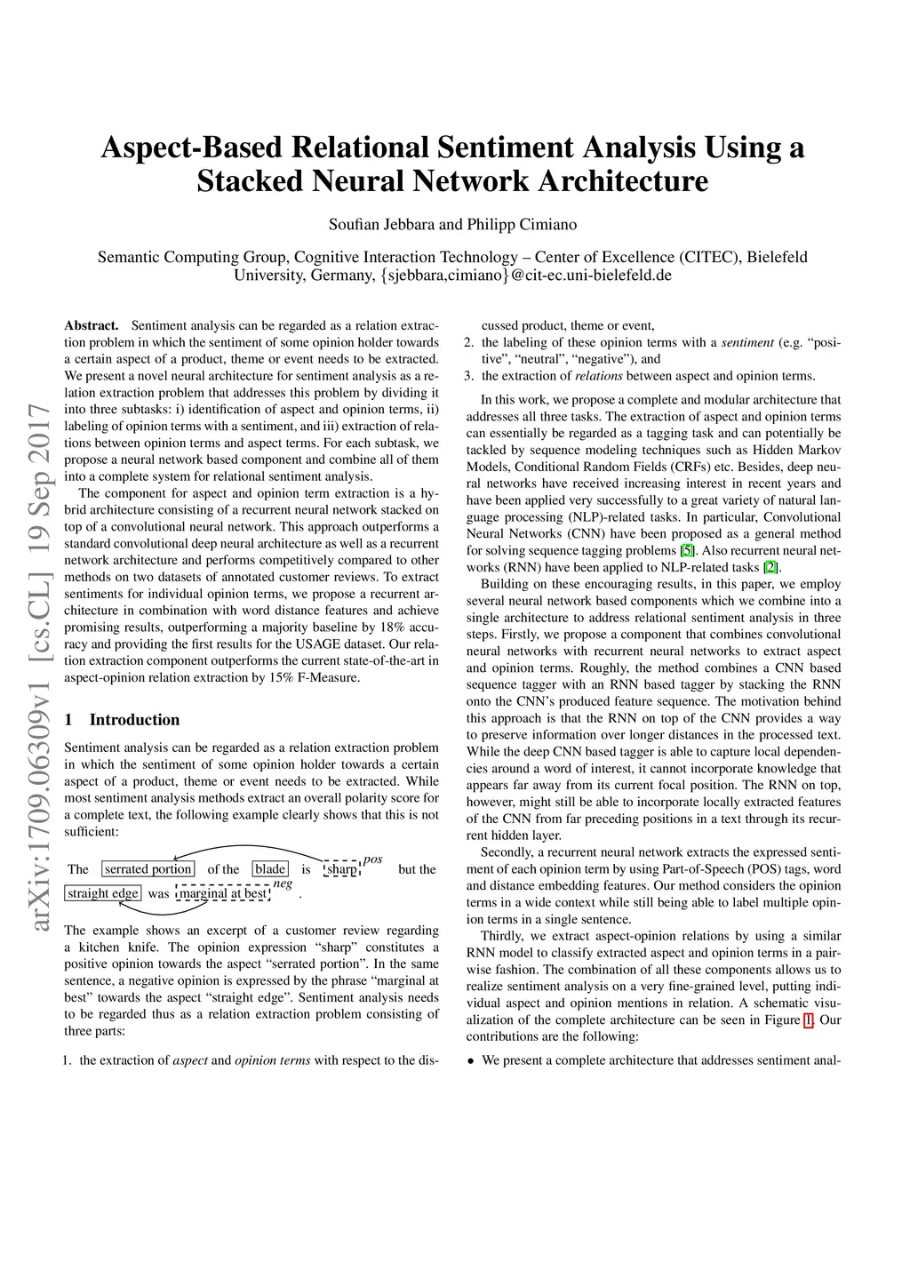 Aspect-Based Relational Sentiment Analysis Using a Stacked Neural