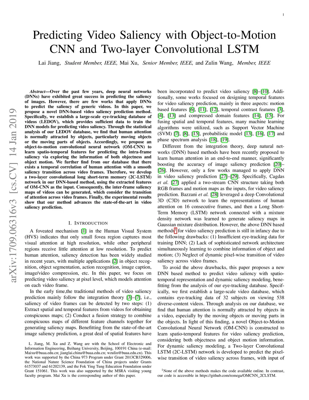 Predicting Video Saliency with Object-to-Motion CNN and Two-layer