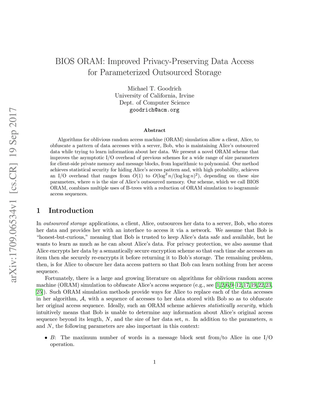 BIOS ORAM: Improved Privacy-Preserving Data Access for Parameterized