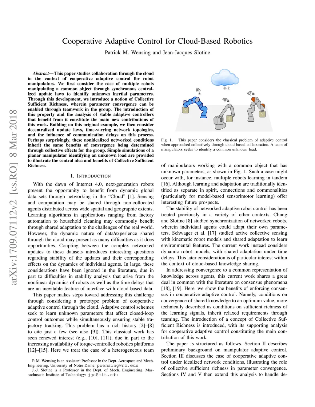 Cooperative Adaptive Control for Cloud-Based Robotics