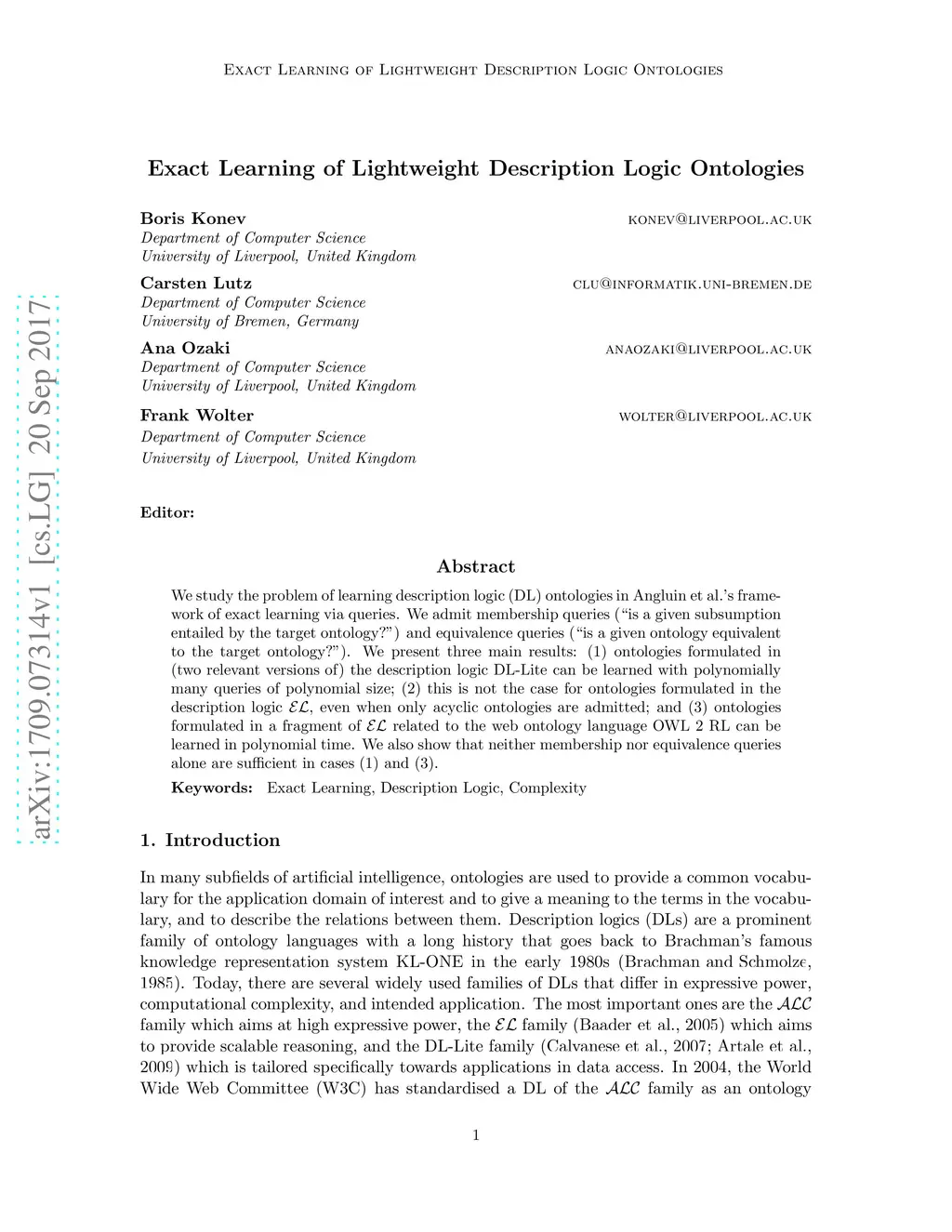 We study the problem of learning description logic (DL) ontologies in Angluin et al.'s framework of exact learning via queries. We admit membership queries ("is a given subsumption entailed by the target ontology?") and equivalence queries ("is a given ontology equivalent to the target ontology?"). We present three main results: (1) ontologies formulated in (two relevant versions of) the description logic DL-Lite can be learned with polynomially many queries of polynomial size; (2) this is not the case for ontologies formulated in the description logic EL, even when only acyclic ontologies are admitted; and (3) ontologies formulated in a fragment of EL related to the web ontology language OWL 2 RL can be learned in polynomial time. We also show that neither membership nor equivalence queries alone are sufficient in cases (1) and (3).
