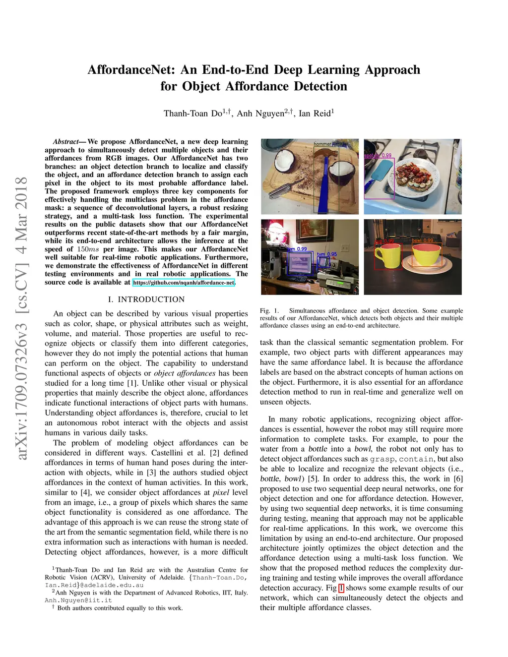 AffordanceNet: An End-to-End Deep Learning Approach for Object
