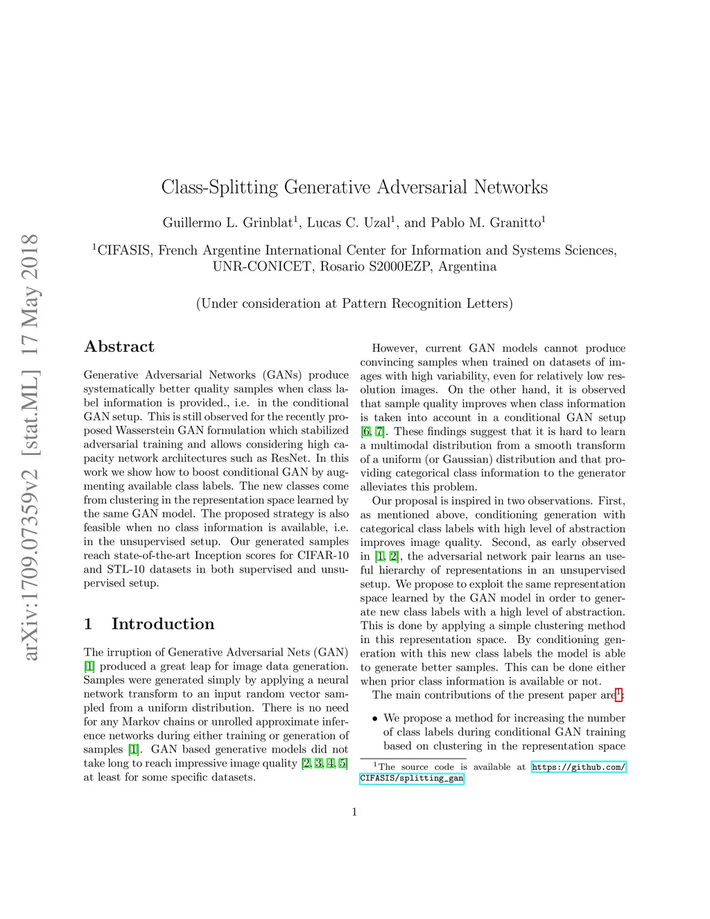 Class-Splitting Generative Adversarial Networks