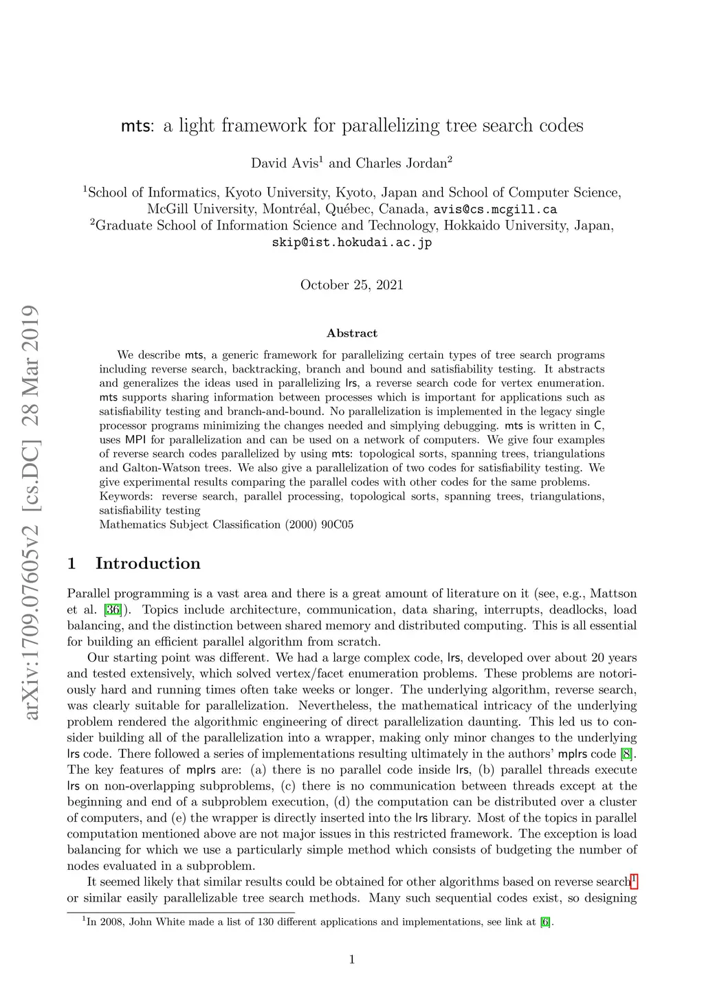 mts: A light framework for parallelizing tree search codes