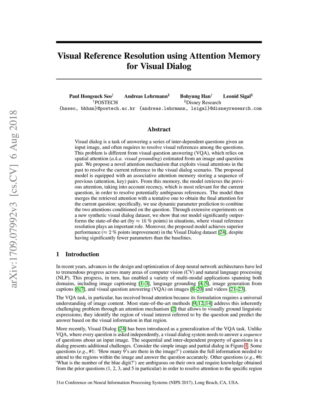 Visual Reference Resolution using Attention Memory for Visual Dialog
