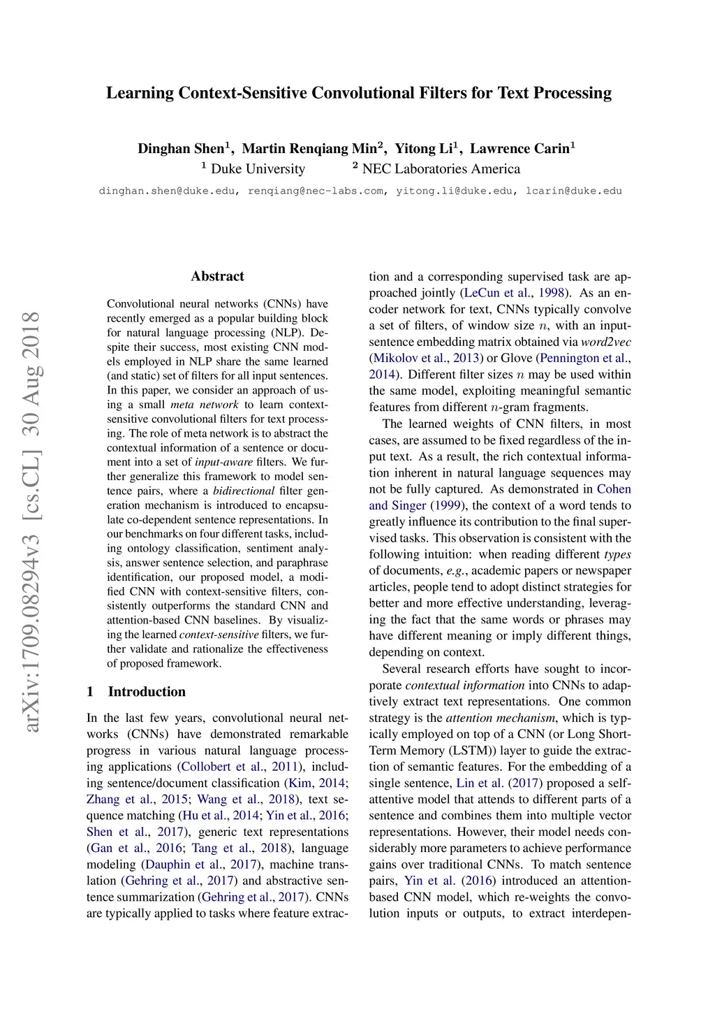Learning Context-Sensitive Convolutional Filters for Text Processing
