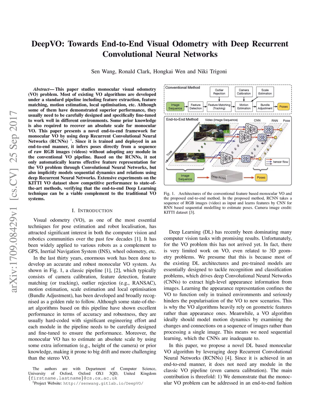 DeepVO: Towards End-to-End Visual Odometry with Deep Recurrent