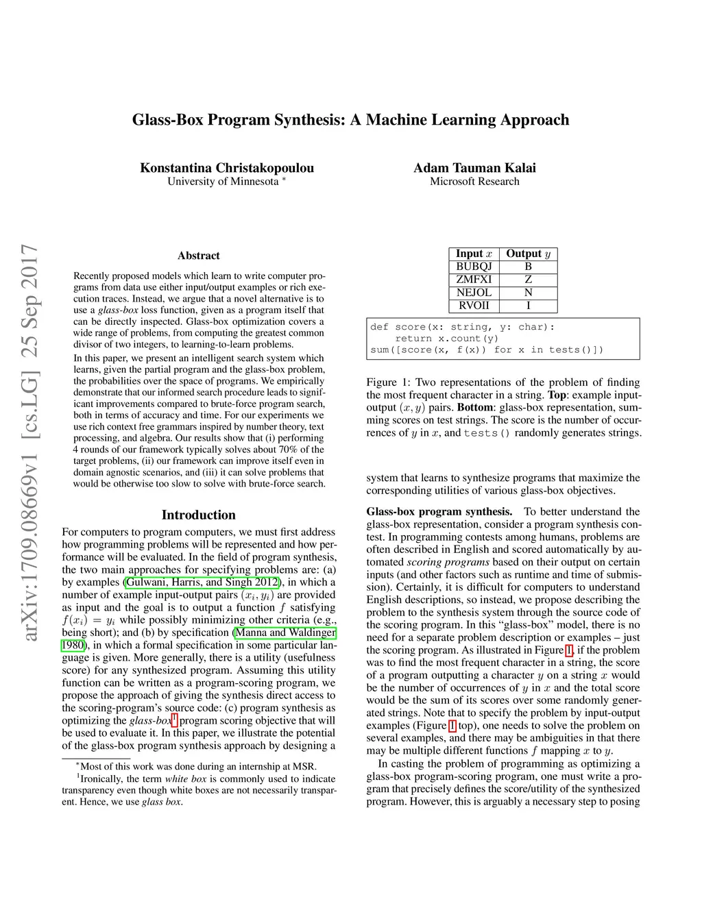 Glass-Box Program Synthesis: A Machine Learning Approach